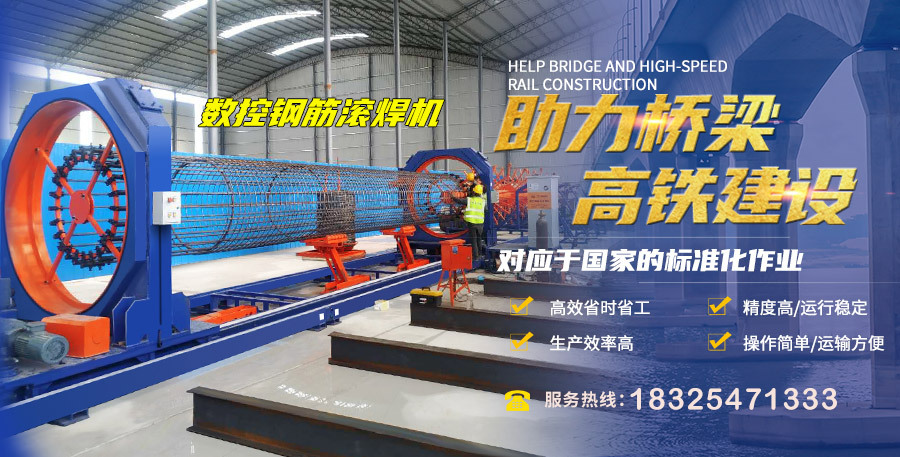 公司主要產品包括:鋼筋籠滾焊機、雙機頭彎曲中 心、數控彎箍機、液壓數控剪切生產線、數控雙線矯直切斷機、數控鋼筋衍架焊接生產線、全自動鋼筋網片焊接生產線、鋼筋馬鐙生產線等不同規格型號的大型鋼筋加工裝備。產品能滿足鋼筋矯直、切斷、彎曲、成籠、成網各種要求...